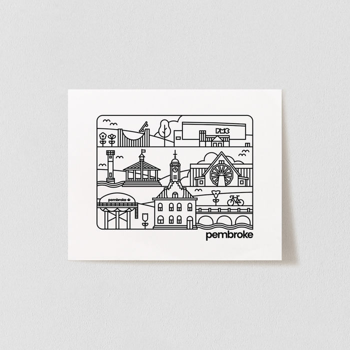 The Pembroke Cityscape Print depicts some of our city's most iconic landmarks and historical buildings.